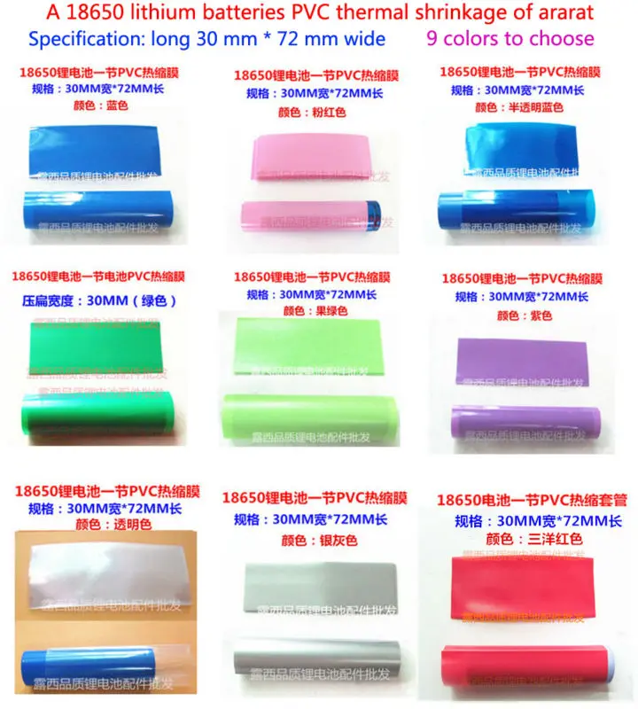 100 шт., прозрачный синий корпус аккумулятора 18650, изоляционный термоусадочный рукав аккумулятора, ПВХ термоусадочная пленка