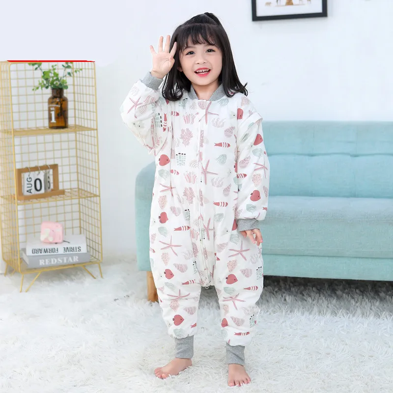 Съемный спальный мешок с рукавами для мальчиков и девочек, детский хлопковый спальный мешок для детей, спальный мешок с разрезами на осень и зиму