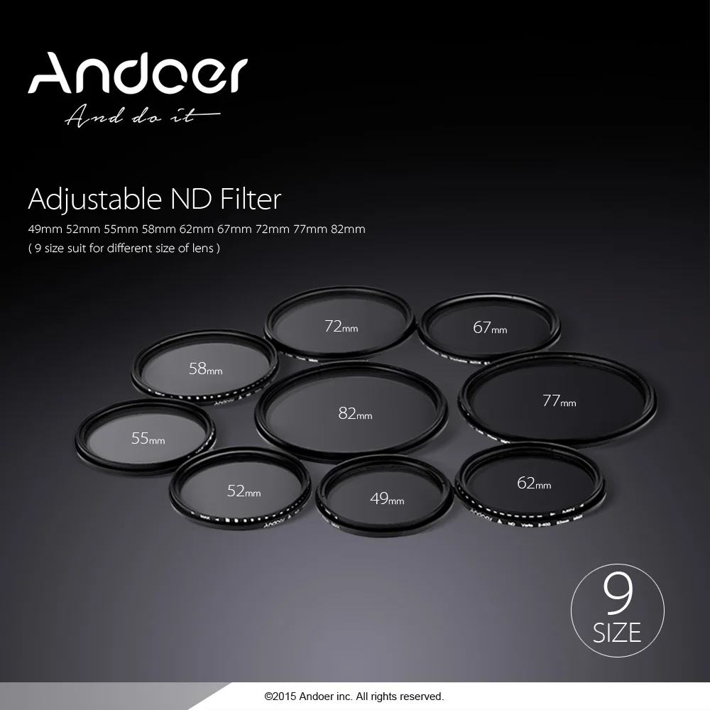 Переменный фильтр Andoer 77 мм ND Fader ND2 to ND400 для цифровой зеркальной камеры Canon, Nikon