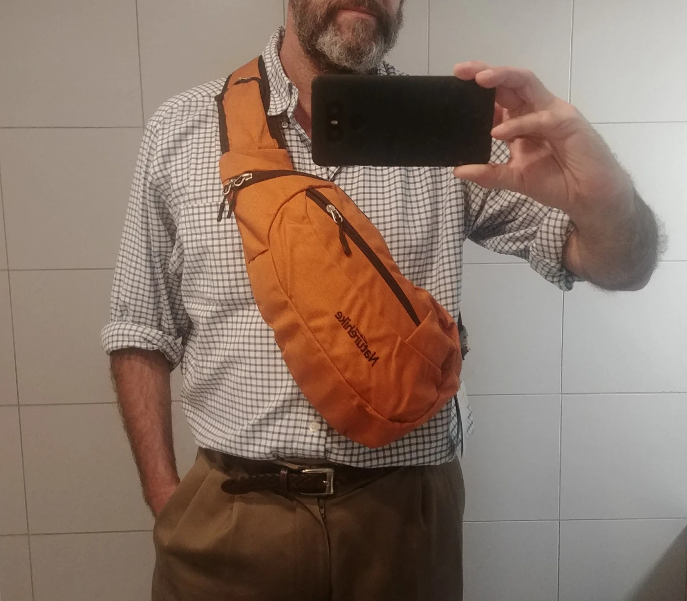 Компактная. Для городских экскурсий и коротких походов отлично будет. Можно по разному располагать. Спереди, сзади и даже как напоясная сумка.