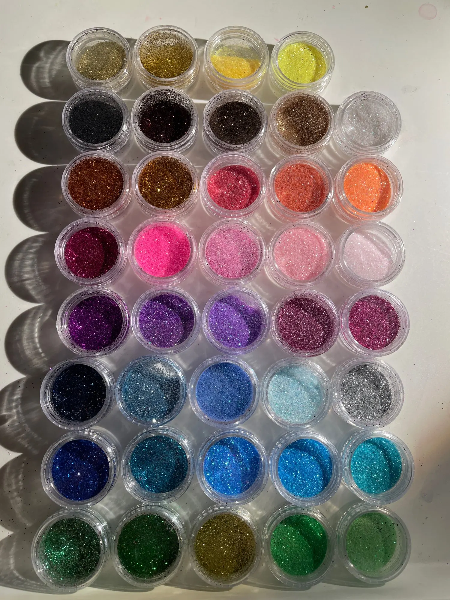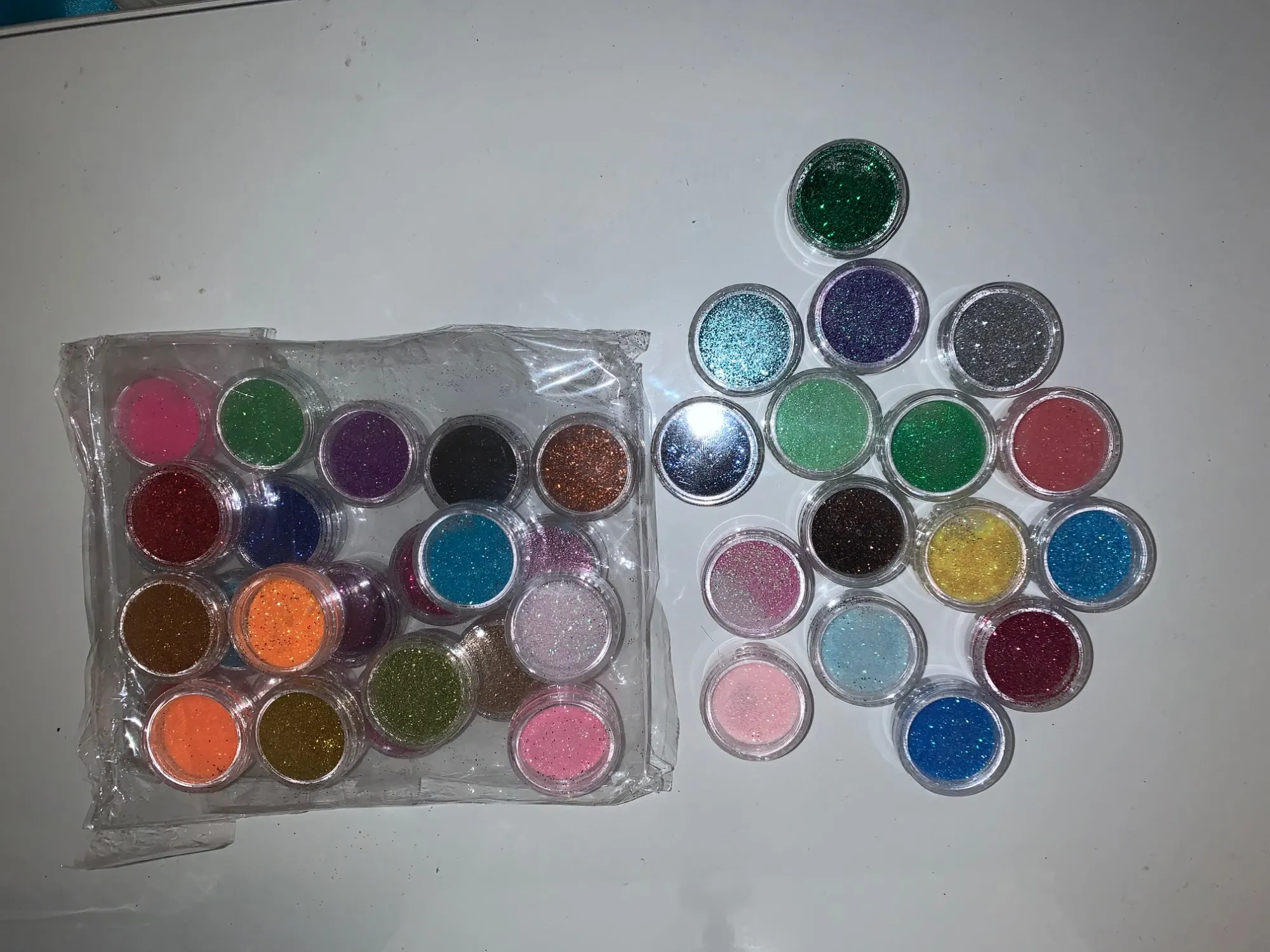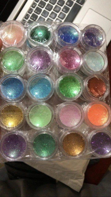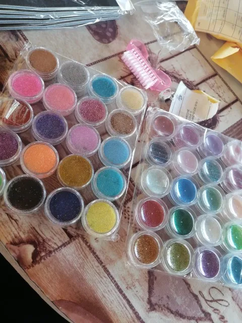 Набор шёл долго, трек не отслеживался. Все цвета яркие, фактура мелкая. Колбы целые. Заказом довольна. Для работы самое то.