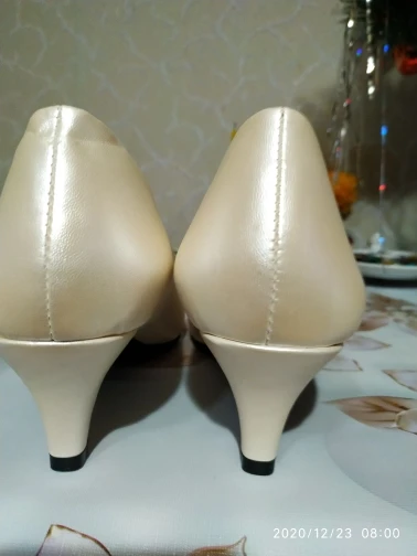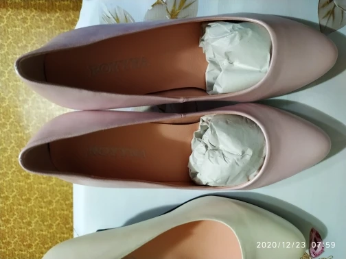 Туфельки - просто класс (!!!) Очень элегантные и красивые. Цвет очень нежный. Полностью, как на картинке и в описании. На 39 брала 25. Сидят хорошо. Единственное, с сильным запахом пока, отправила их на балкон. Посмотрим что с запахом, и, скорее всего, закажу ещё в другом цвете. Так же продавец отправил в подарок удобные стельки для другой обуви (например, осенней или весенней) моего размера.
