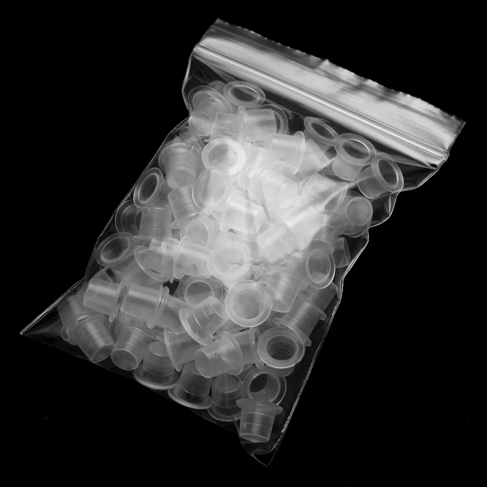Колпачки одноразовые для чернил для татуировок, 100 шт., чашки для пигментов прозрачные, для перманентного макияжа