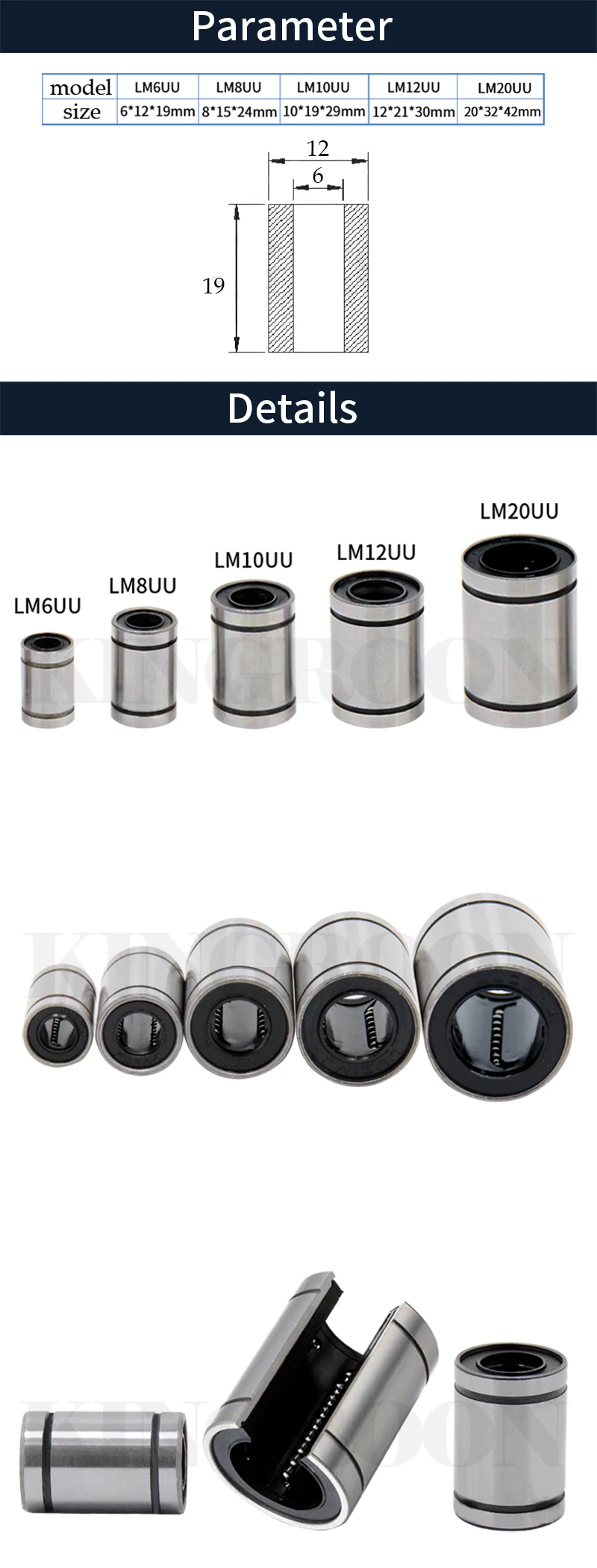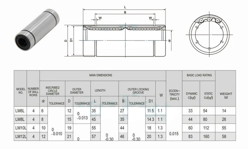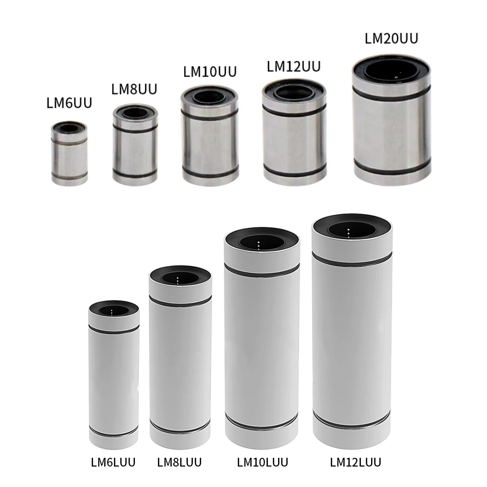 Линейные шарикоподшипники LM6LUU LM8LUU LM10LUU LM12LUU 6 мм 8 мм 10 мм втулка втулки Запчасти для 3D-принтера алюминиевые линейные подшипники, 2 шт.