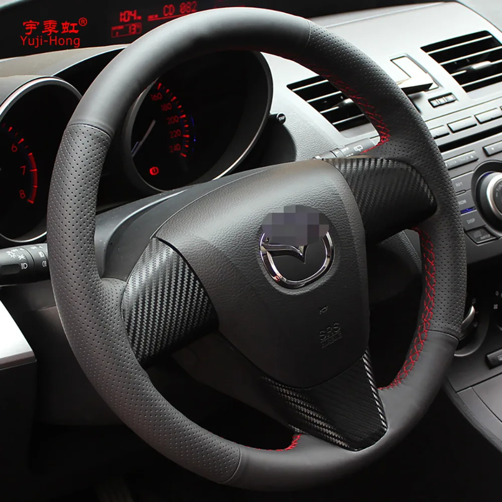 Чехол для руля автомобиля Yuji-Hong из натуральной кожи, чехол для MAZDA 3 2011-2015, искусственная кожа для Mazda 5 2011-2013, прошитый вручную