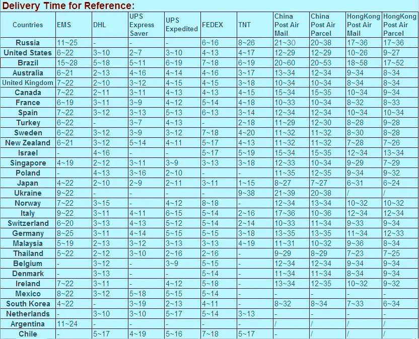 Если ваша посылка срочная, мы рекомендуем использовать коммерческие Экспресс-службы, такие как fedex,tnt,dhl,ups и т. Д.