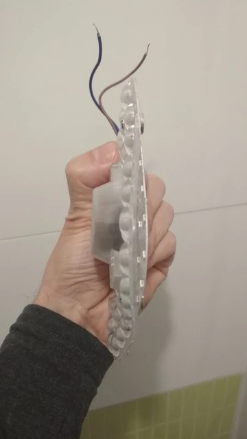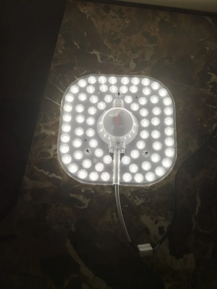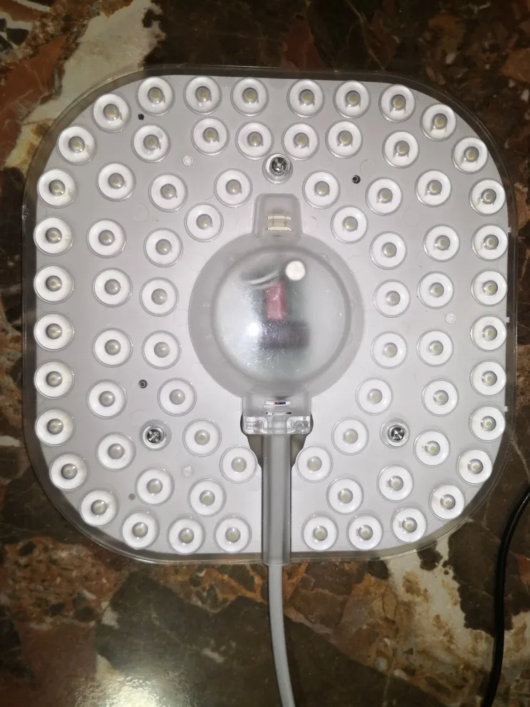 Цвет приятный, монтаж лёгкий, буквально пока закипает чайник. Модуль пришел в простом пакете с примотанной на скотч пенкой, но всё целое и невредимое. В общем, результат мне понравился. На счёт мощности ничего не подскажу, не умею делать такого рода замеры. Фото 1 - Модуль в светильнике. Фото 2 - Цвет свечения (задний план, у двери).