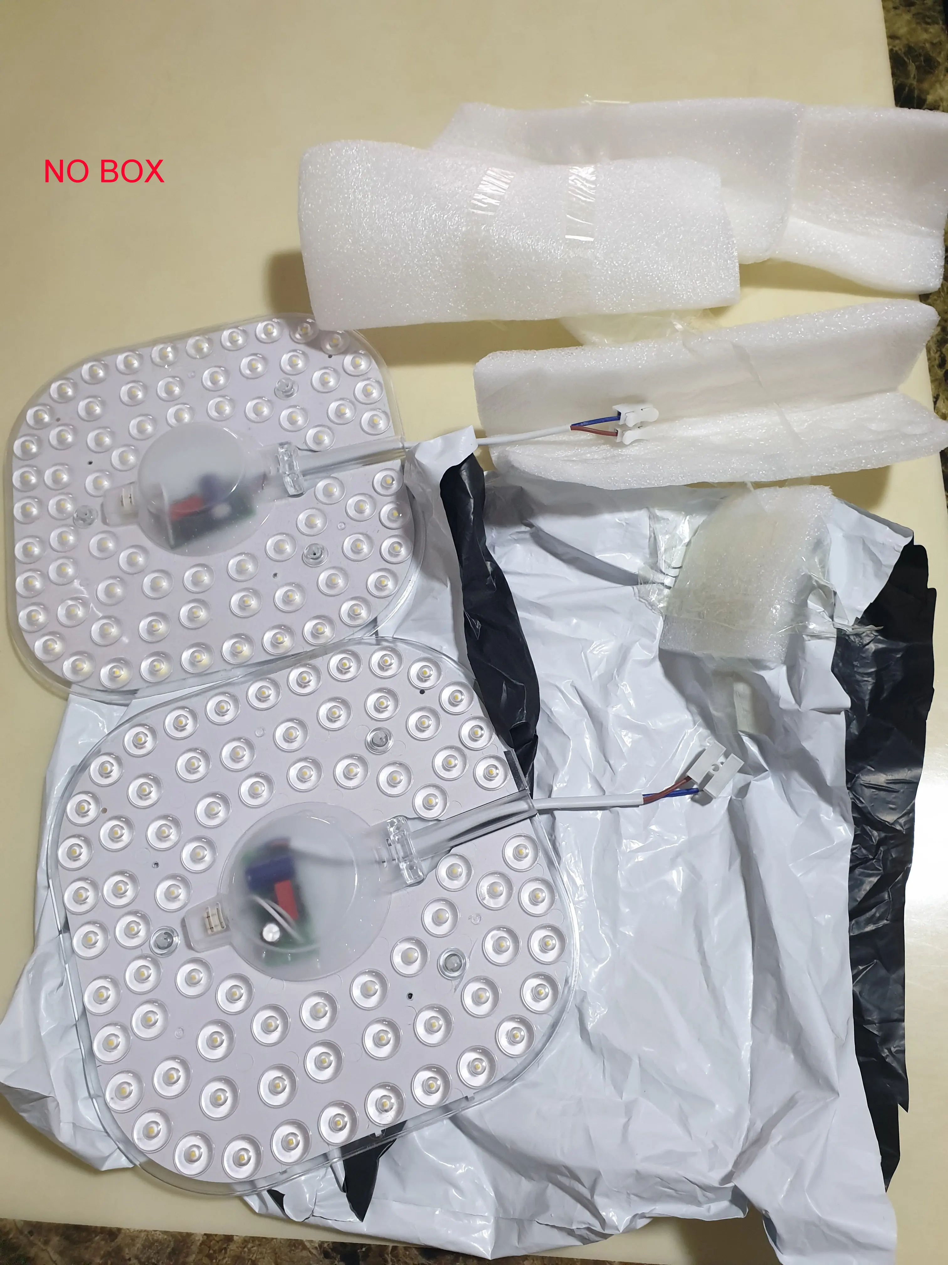 Срок доставки в порядке, но упаковка очень плохая. Коробка отсутствует, просто склейте 2 лампочки вместе, склейте кусочки тонкой пены по бокам света и положите в пластиковый конверт. 1 единица прибыла с трещинкой. Я не тестировал, поэтому не знаю, работает ли он. Если он работает, чем нормально.