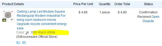 Страна: RU Color: 36W Warm White Доставка: Standard Shipping 05.02.2021