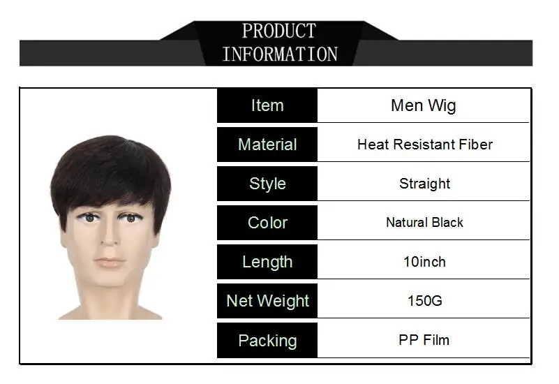 Натуральные Прямые мужские короткие парики из термостойкого волокна, черные синтетические волосы для мужчин среднего возраста