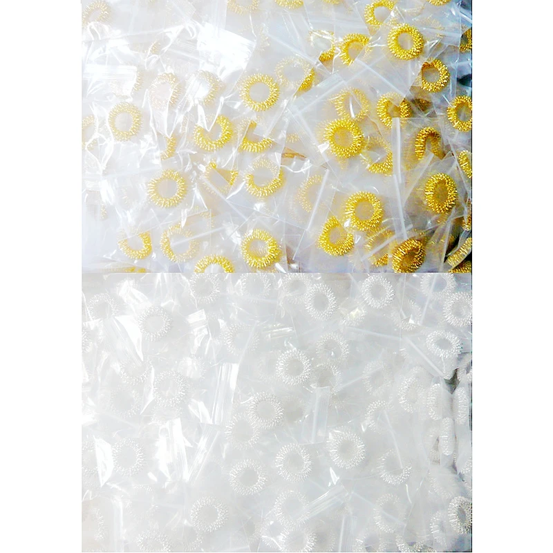 100 шт./лот, золотистый/серебристый цвет, мини пружинный массаж пальцев, расслабляющий гаджет, диаметр 27 мм, акупунктурные массажные кольца, массажер для пальцев