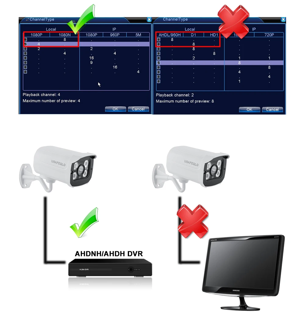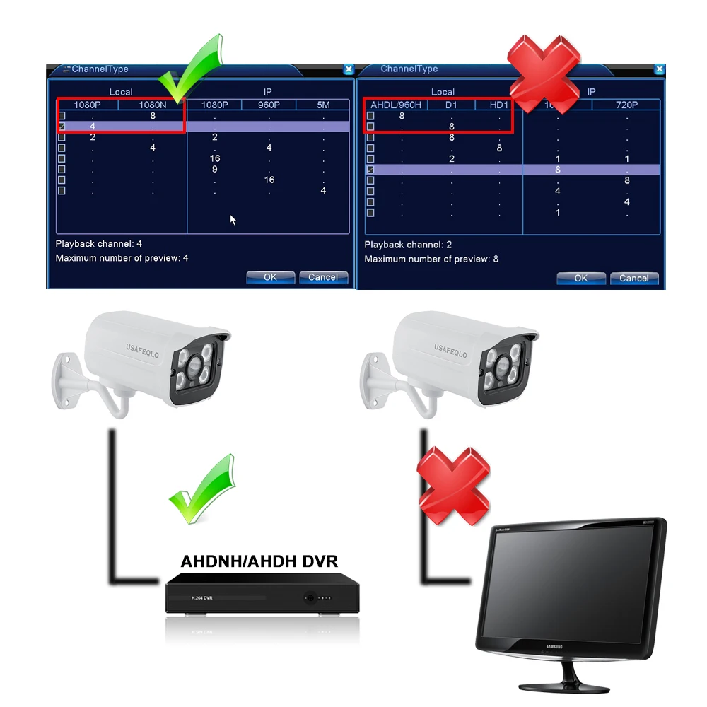1) этот товар является AHD камерой. AHD сигнал не является аналоговым сигналом. AHD камеры должны быть сопряжены с AHD сигналом DVR.2) AHD1080P не такой, как IP 1080P, AHD является аналоговым сигналом, но показывает цифровые изображения.3) AHD720P и AHD960P поддержка AHDM, AHDNH, AHDH DVR4) AHD 1080P Поддержка AHDNH и AHDH DVR5) AHD 4MP или AHD 5MP камеры все могут поддерживать эти три вида камер.6) AHD камеры не могут работать с телевизорами или другими мониторами. Если вы используете AHD тестер, пожалуйста, убедитесь, что ваш тестер имеет правильный сигнал.7) Если вы не знаете, что такое AHD 1080P, пожалуйста, проверьте цифровой вариант в вашем меню DVR для просмотра 720P, 960P, 1080P или AHDM, AHDNH, выбор AHDH.8) у этой камеры нет IP функций
