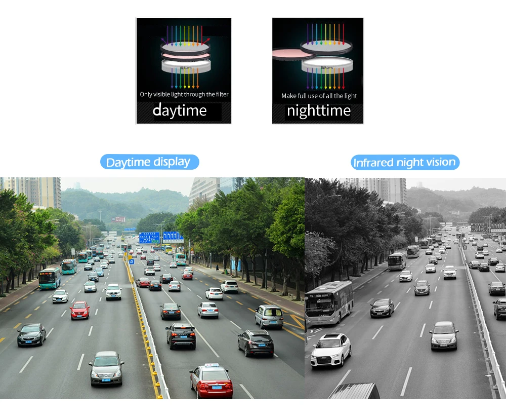 Умный фильтр, отсекающий ИК-спектр автоматически переключается между дневным и ночным видением для уменьшения цветопередачи и обеспечивает получение наиболее четких изображений