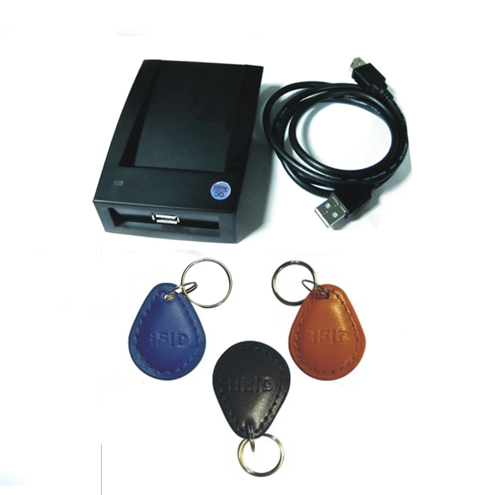 10 шт., кожаные RFID-Брелоки 125 кГц и один USB-считыватель RFID 125 кГцкожаный стиль