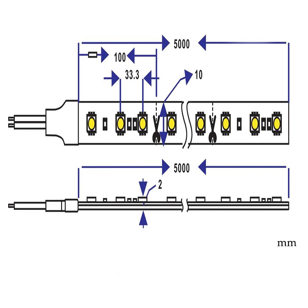 2. Каждый 3 светодиода на секцию в 2 дюйма (5 см) длиной можно отрезать, можно использовать 10 мм Широкие разъемы без пайки