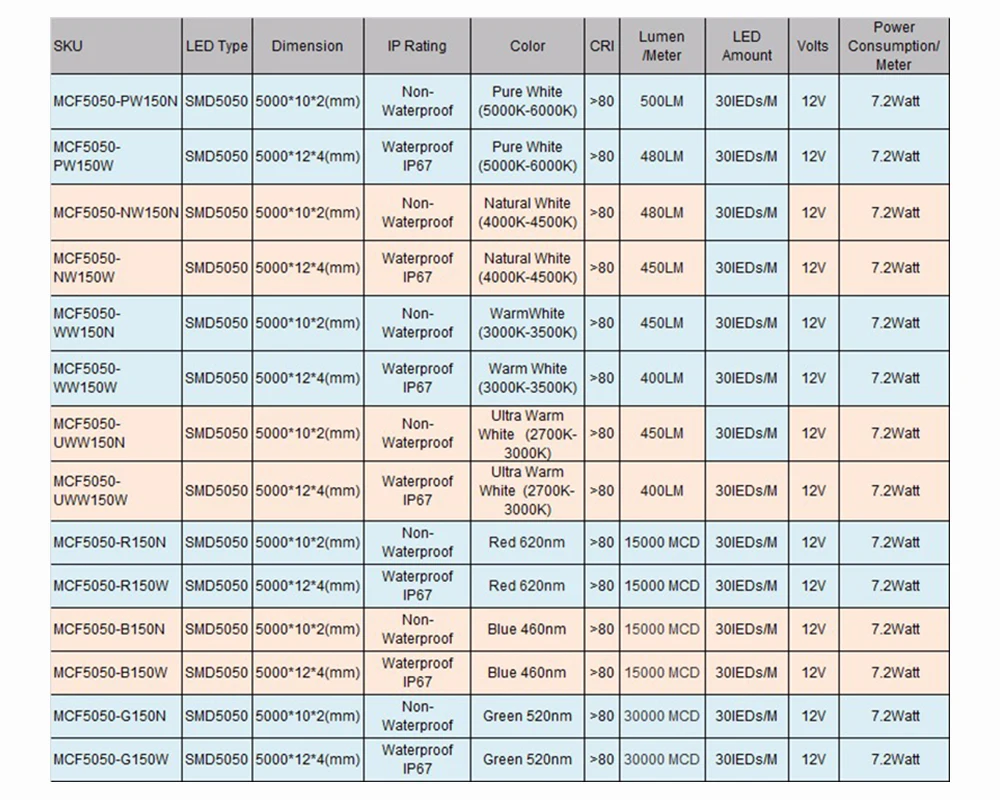 Темп. Цвета (K)Warm White(3000K-3500K)