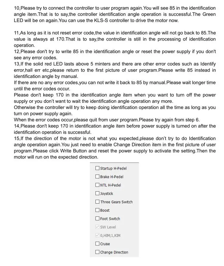 (18) аналоговый режим регенерации тормозов. Этот режим регенерации больше не нуждается в переключателе тормозов для поддержки. Доступно только с программного обеспечения версии 0106.KLS контроллер не может поддерживать рефлексирование.