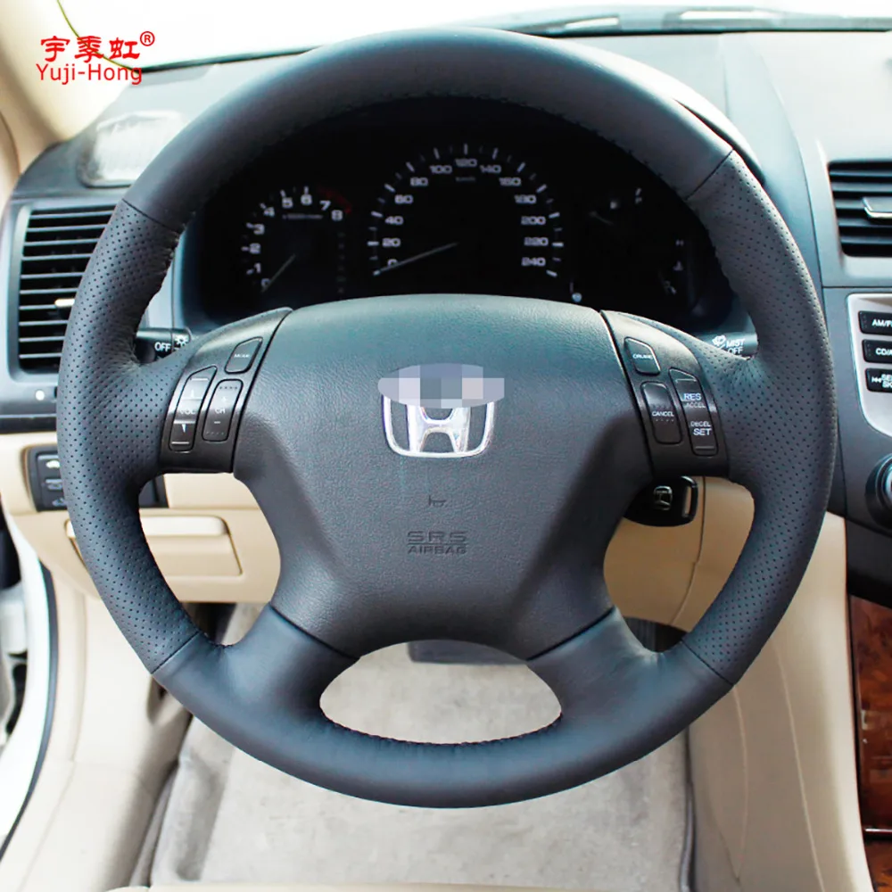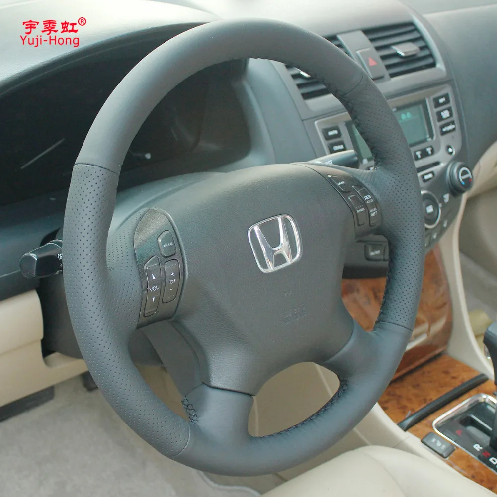 Чехол Yuji-Hong из натуральной коровьей кожи с верхним слоем для HONDA Accord 7 (4 спицы) автомобильный чехол для руля