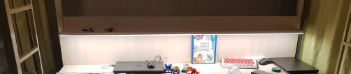 лента очень яркая , прилично греется при работе и жаль что нет защиты от влаги