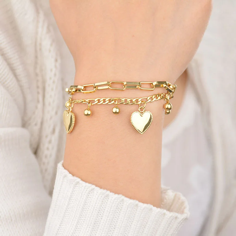 Бижутерия для женщин, многослойная удлиняющая цепочка, бусины золотистого цвета в форме сердца, браслеты из нержавеющей стали для подарка