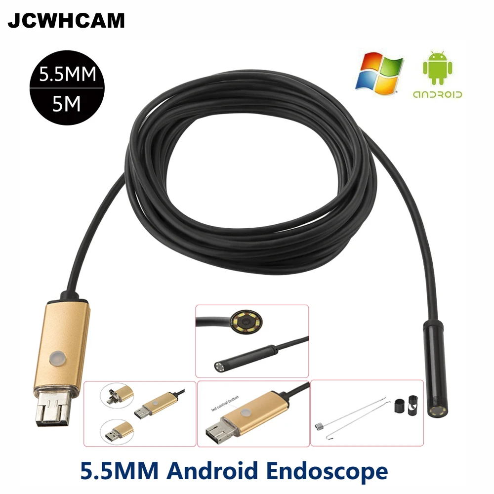 JCWHCAM 5,5 мм 5 м USB Android эндоскоп бороскоп Инспекционная камера HD 6 светодиодов 5,5 мм водонепроницаемый автомобильный эндоскоп трубка мини-камера