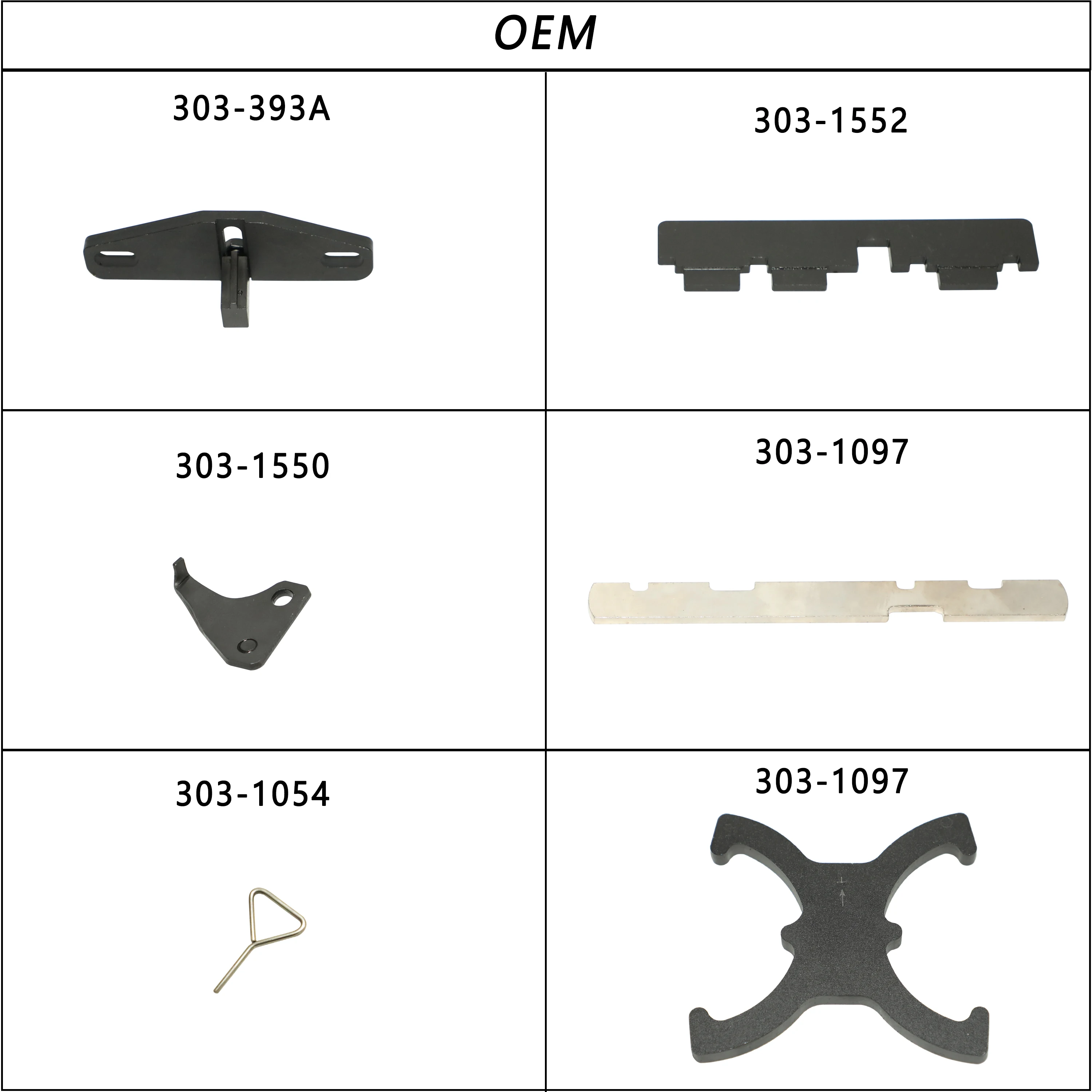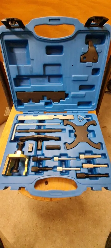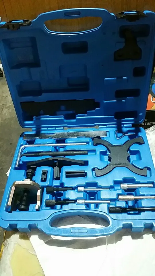 Включает инструменты для блокировки распределительного вала и маховика различные штыри синхронизации плюс инструмент для удаления звездочки распределительного вала.