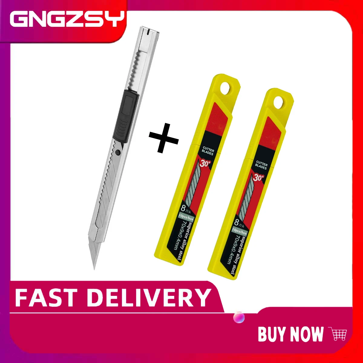 Применение: Автомобильный нож для удаления клея виниловой оберточной пленки, нож для открывания завода, нож для создания рекламных вывесок, резак для графического искусства, школьные канцелярские принадлежности, необходимый домашний мини-нож для резки, строительные инструменты и т. д.