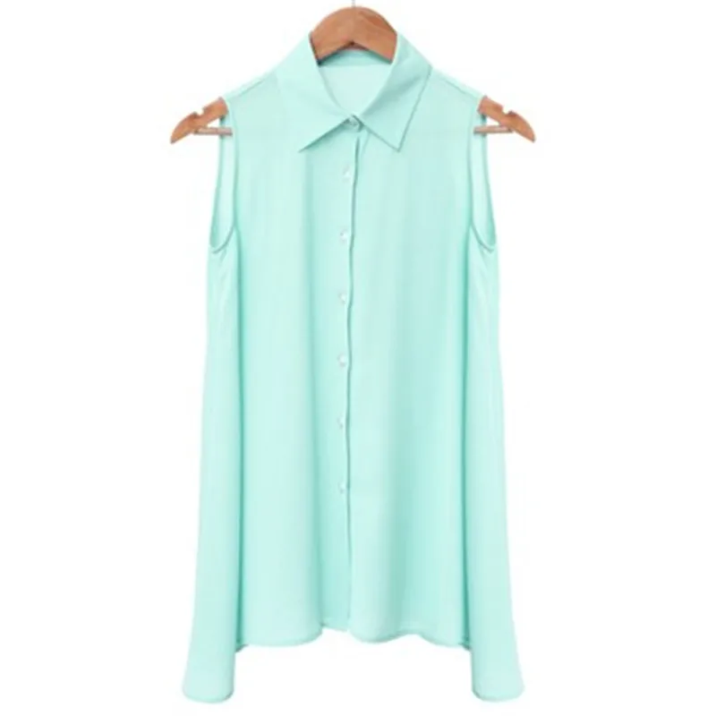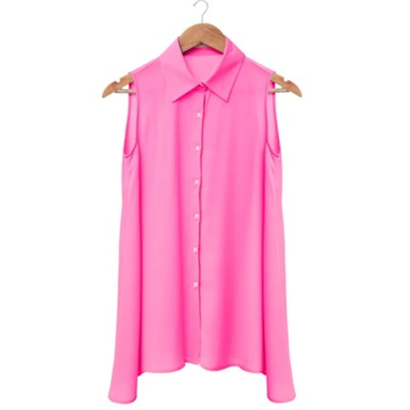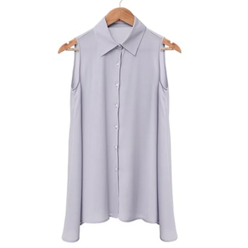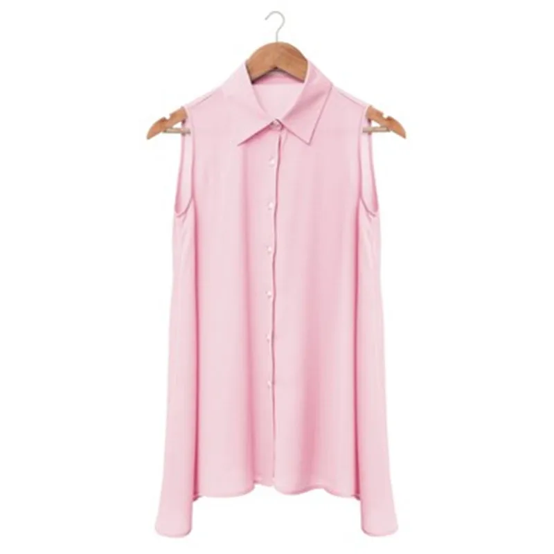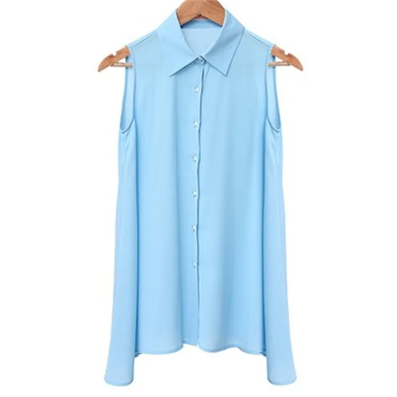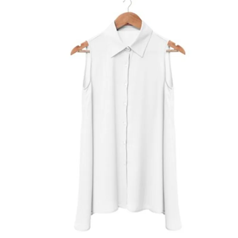 Топ женский с отложным Свободная блузка с воротником без рукавов, Свободная шифоновая рубашка, дышащая Базовая сорочка черного и белого цвета, на лето