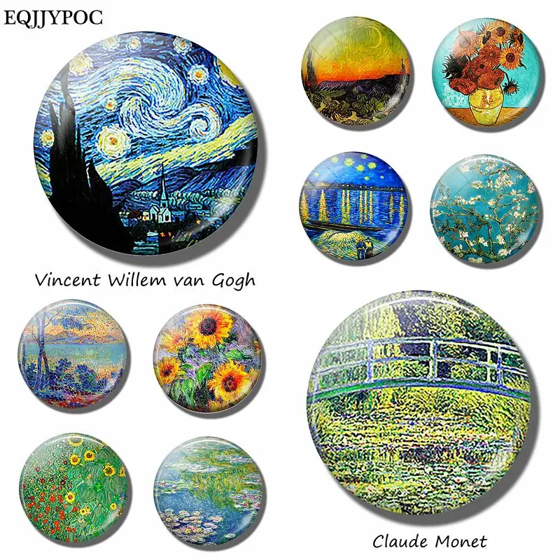 Monet водяная Лилия пруд искусство 30 мм круглый магнит для холодильника Ван Гог стеклянный кабошон наклейка на холодильник французский Импрессионизм домашний декор