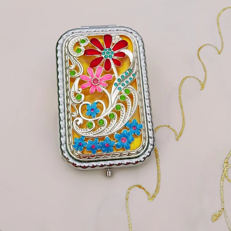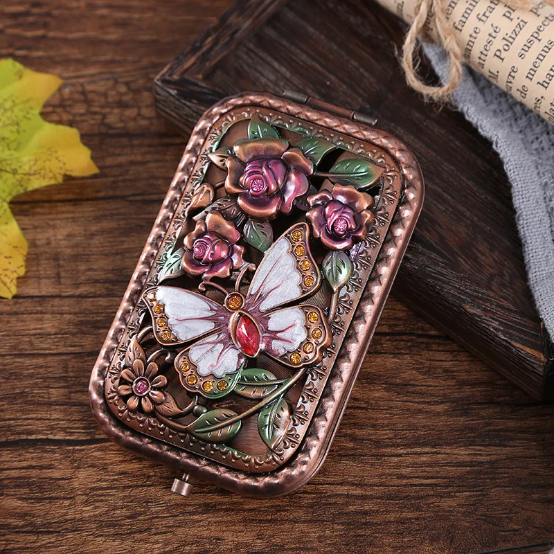 Высококачественное мини двойное зеркало принцессы с милым квадратным креативным складным покрытием и чехлом в стиле ретро и портативным зеркалом
