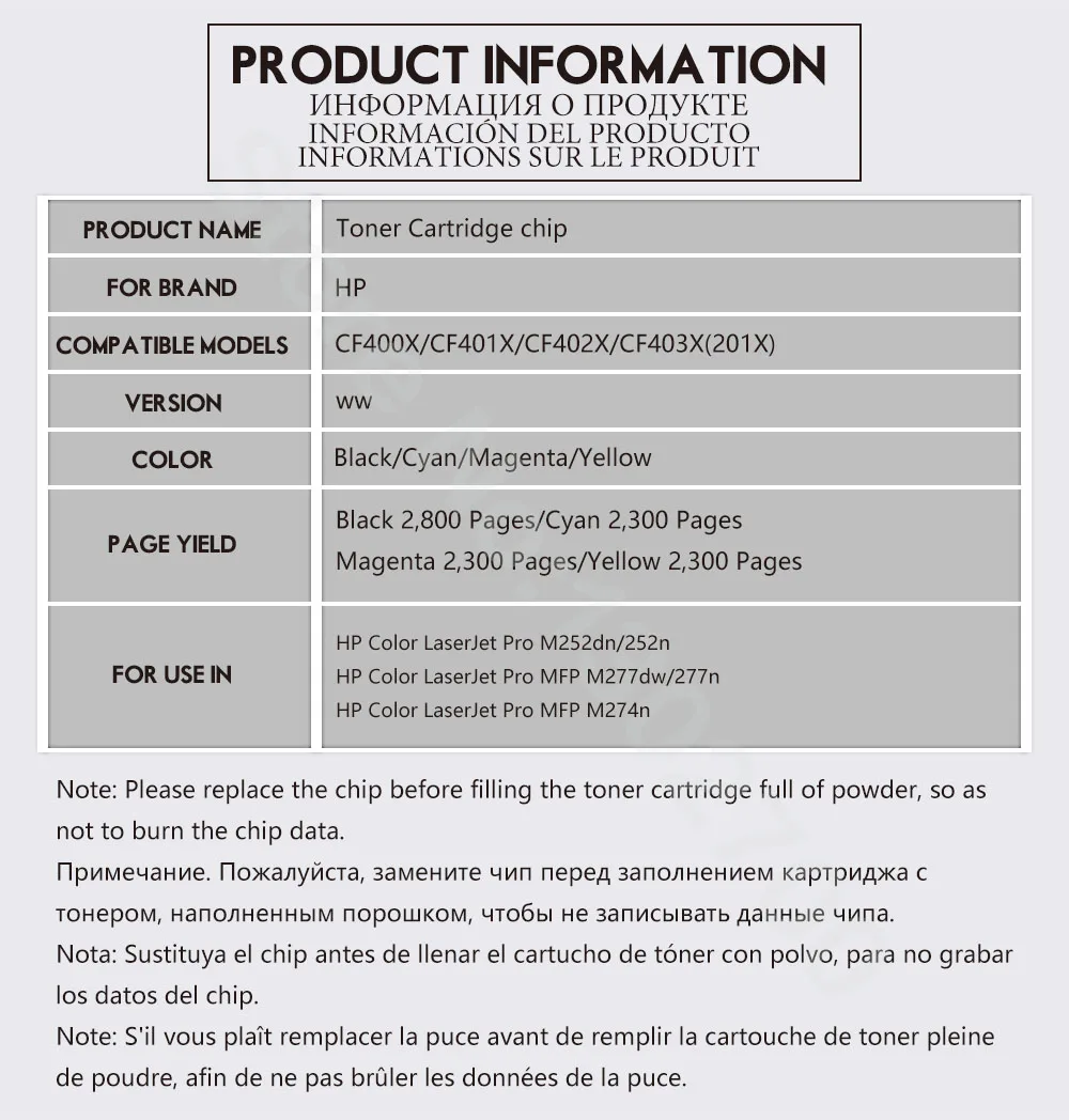 Chip For Toner cartridge codeCF400X/CF401X/CF402X/CF403X