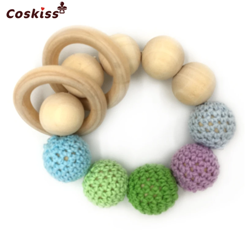 Разноцветные вязаные крючком бусины Прорезыватель деревянное кольцо спиральные бусины ручной работы органические натуральные деревянные бусины Детские деревянные игрушки