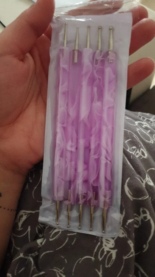 Дотсы удобные и ими легко делать дизайн, шарики на концах разного размера, но если взять в руку 5 дотсов можно увидеть что сверху они разные а снизу все шарики одинаковые (это не практично, но если привыкнуть, то нормально) заказываю у этого продавца уже не первый раз и все приходит в целости, а товар отличного качество!