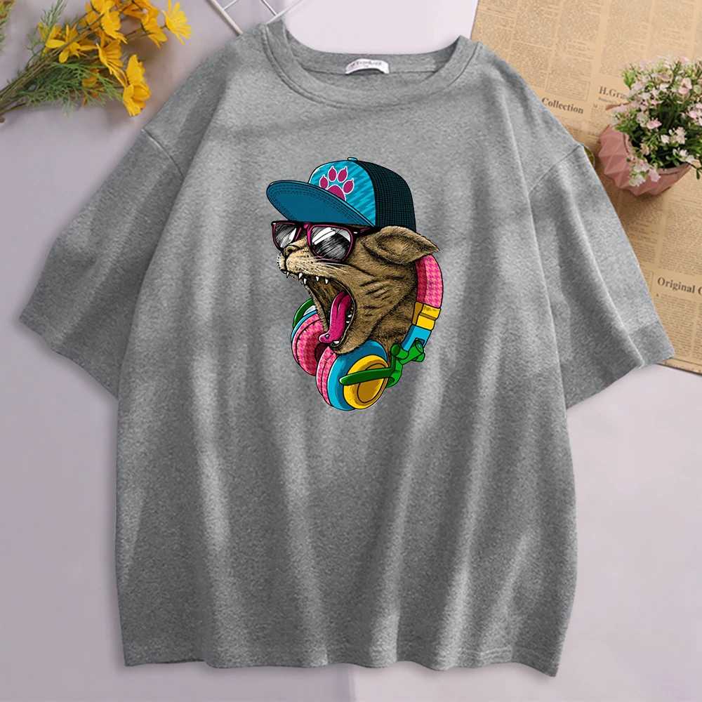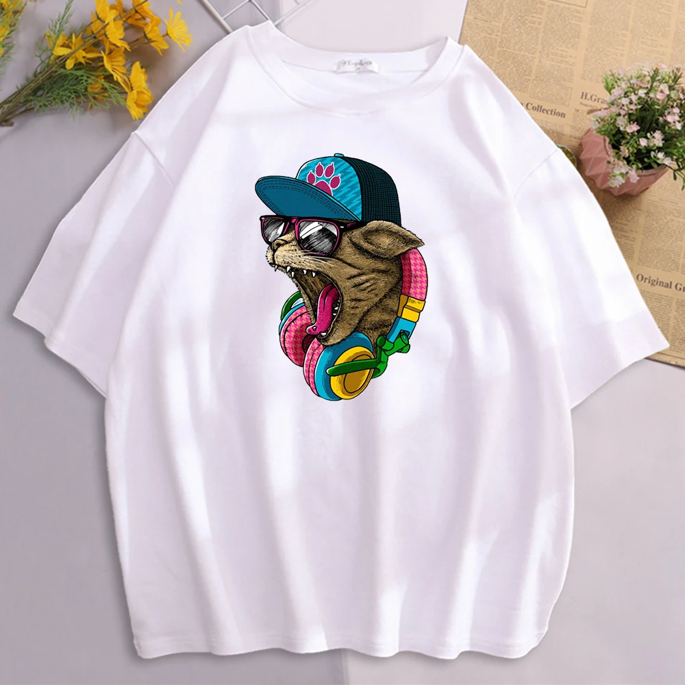 Футболка мужская из 2021 хлопка, с 3D принтом Crazy DJ Cat, 100%, в стиле хип-хоп, летняя, Забавные топы