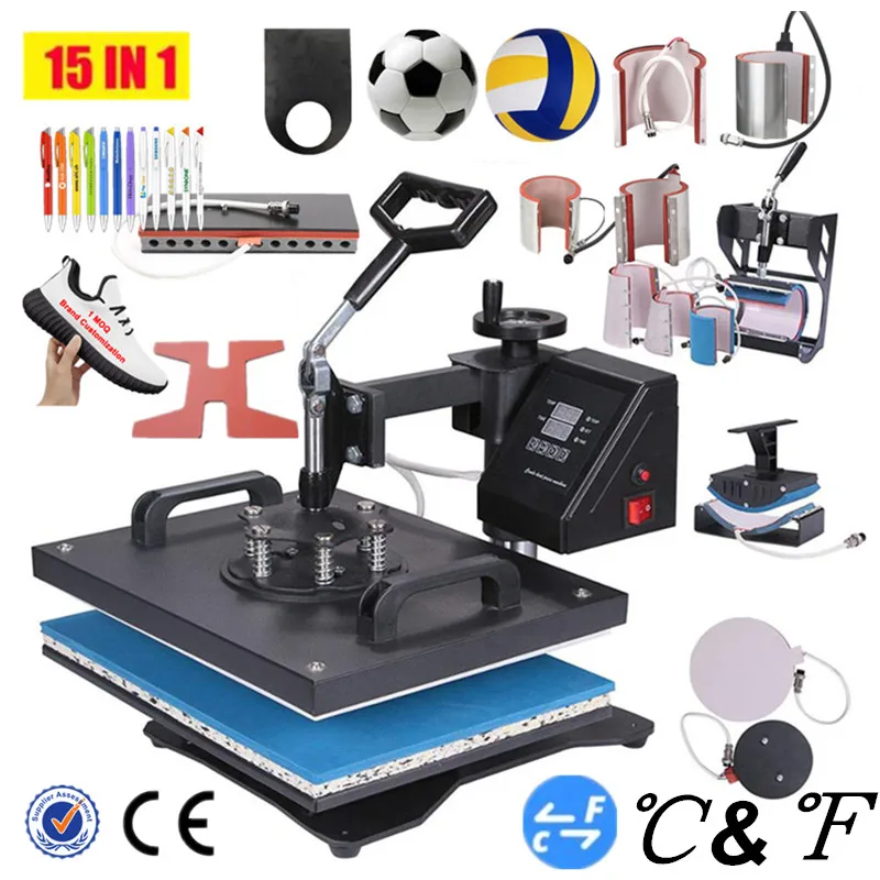 15 в 1 комбинированный сублимационный термопресс, термопринтер для футболок ℃/℉ для крышки/кружки/бутылки/футболки/чехол для телефона/ручка/обувь