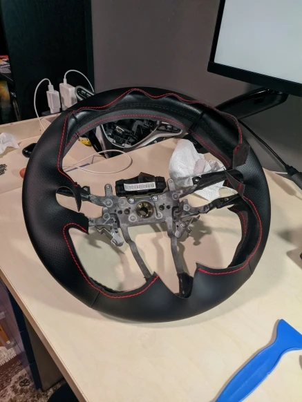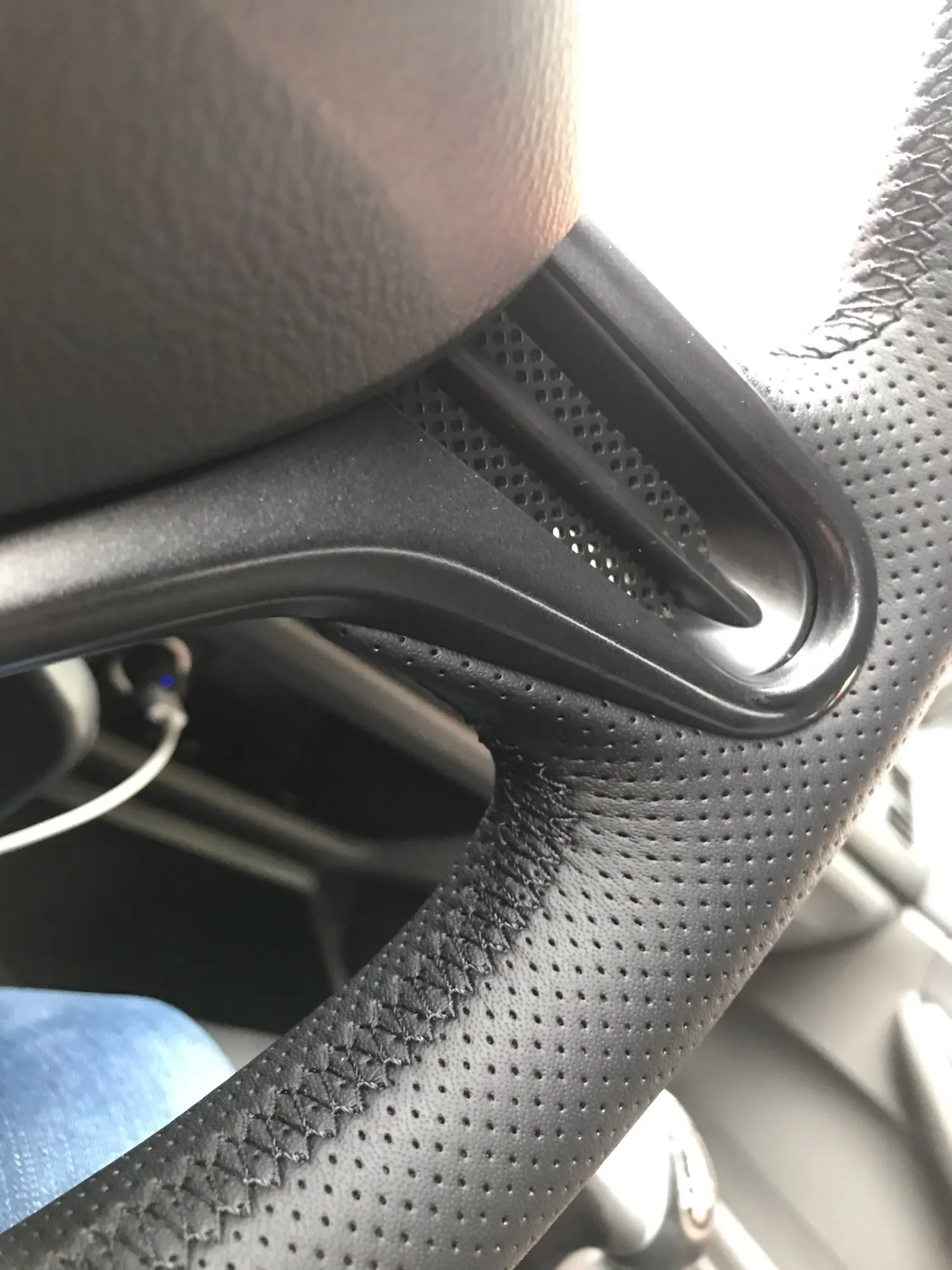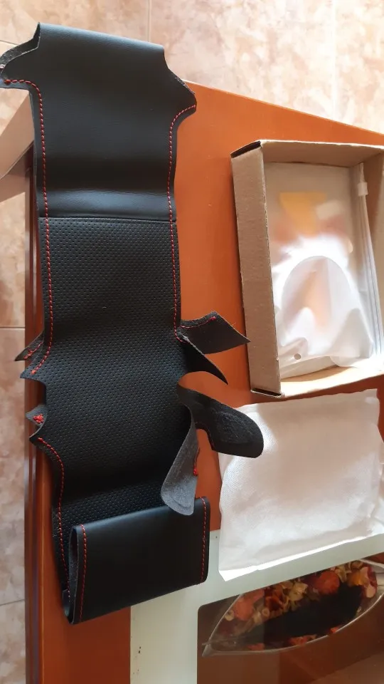 В двух словах: спереди красота, сзади страшный колхоз. Перешивал по инструкции из интернетов, двусторонний скотч в комплекте толком не помог при перетяжке, зато дома пригодится) Если бы знал раньше, что такой результат будет не купил бы. НО! Но кожа нормальная, приятная на ощупь, не воняет, после перетяжки, ночью, на повороте как будто новый руль по ощущениям.
