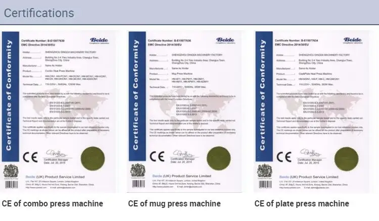 Мы специализируемся на различных видах термопрессовых машин и сублимационных расходных материалов. Сертифицированные CE стандарт, наша продукция хорошо продается на внутреннем и зарубежном рынках. Наш ассортимент продукции: индивидуальная печать «сделай сам», сублимационные расходные материалы, искусство и подарки и т. д. с высоким качеством и хорошим послепродажным обслуживанием, отзывами и доверием наших клиентов.