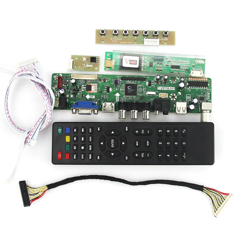 1x ЖК-дисплей/светодиодный контроллер(T.VST59) 1x с холодным катодом (CCFL Инвертор доска 1x клавиатура с кабелем 1x кабель низковольтной дифференциальной передачи сигналов1x пульт дистанционного управления