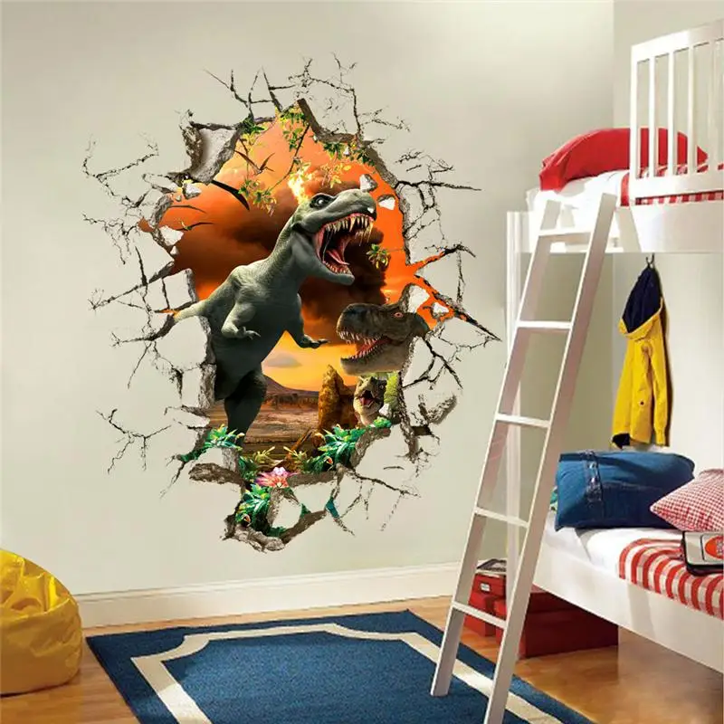 3d Динозавры настенные наклейки украшения дома мультфильм гостиная Юрский период животные принт наклейка росписи искусства плакат Peel Stick