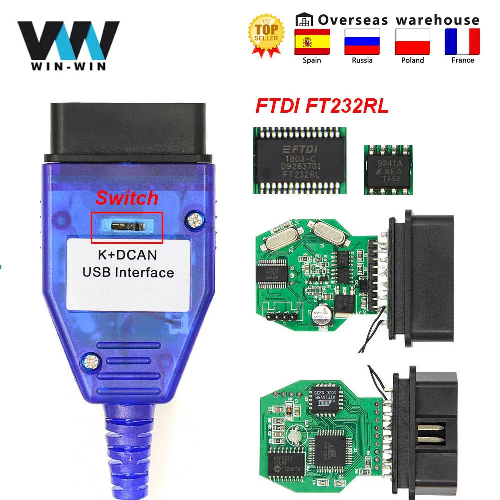Диагностический кабель OBD2 для BMW, сканер с полным чипом для BMW K DCAN K + CAN Switch FTDI