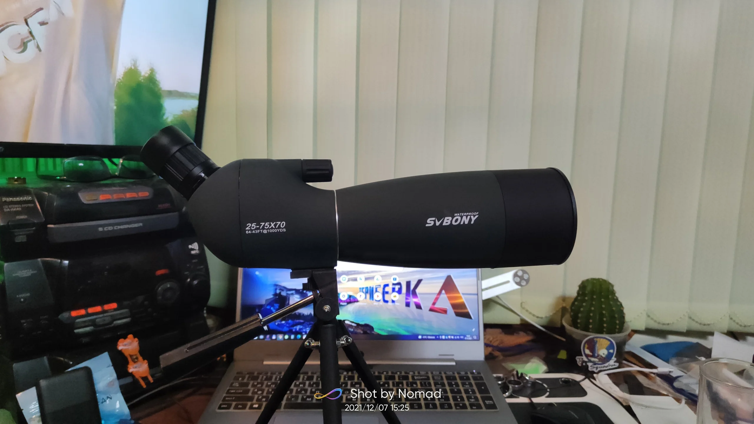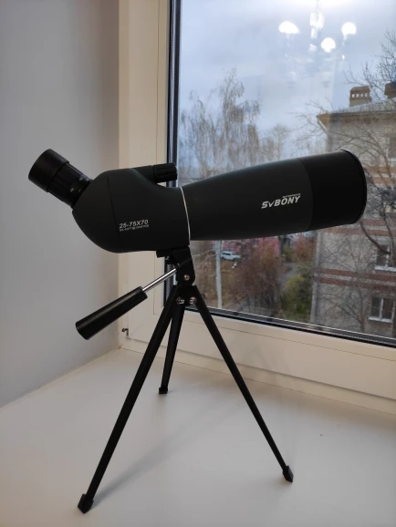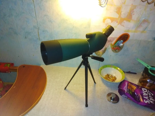 На удивление мне понравился. Это моё первое знакомство с телескопами. Заказал для телефона приблуду. На расстоянии 2.1 км увидел в окне дартс на стене. Покупал 11.11 с купонами. Как придёт приблуда, скину фото, а то так неудобно фотографировать.