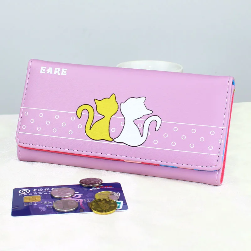 Дамские кошельки с рисунком кота, женские бумажники, кредитница, складной клатч, конверт, Короткие Длинные женские бумажники для мелочи, сумочка для девушек