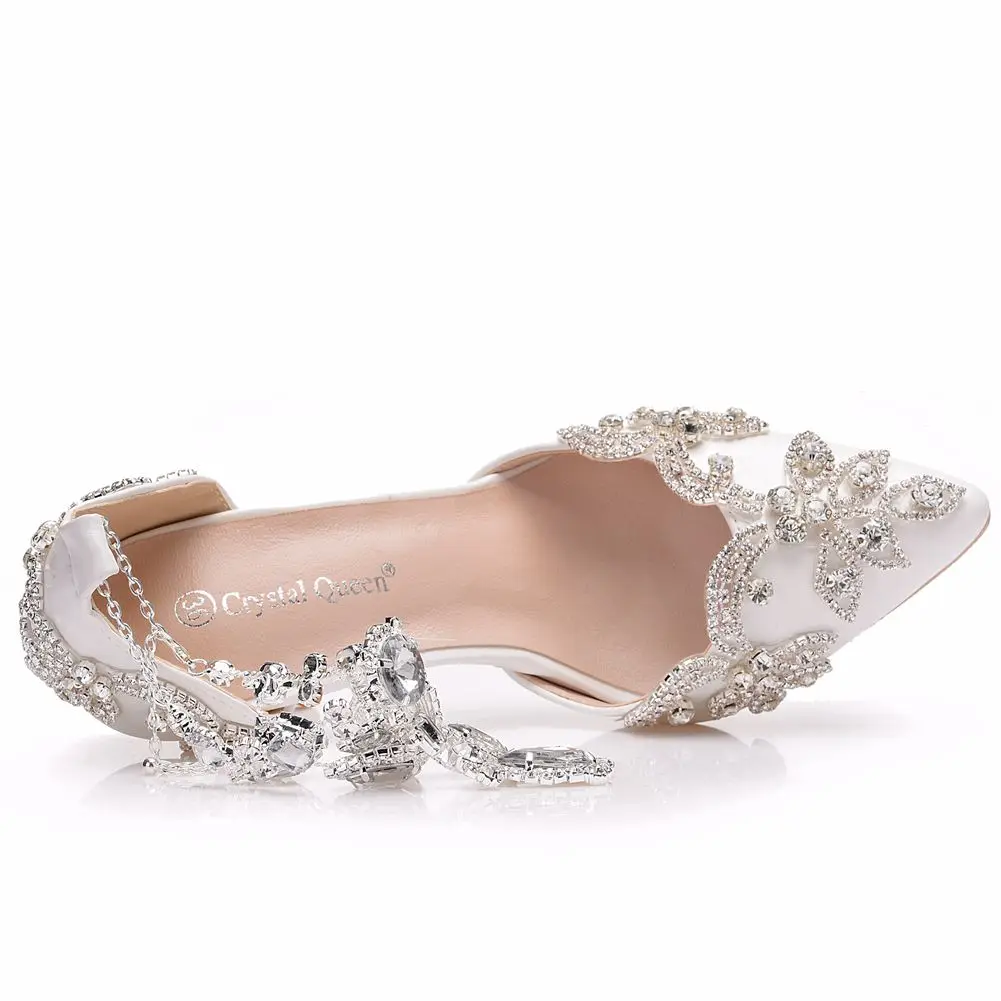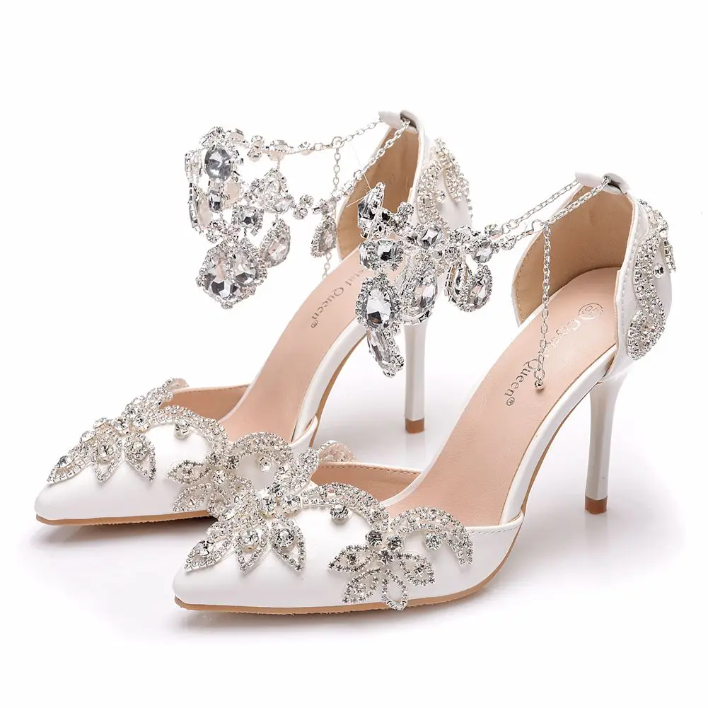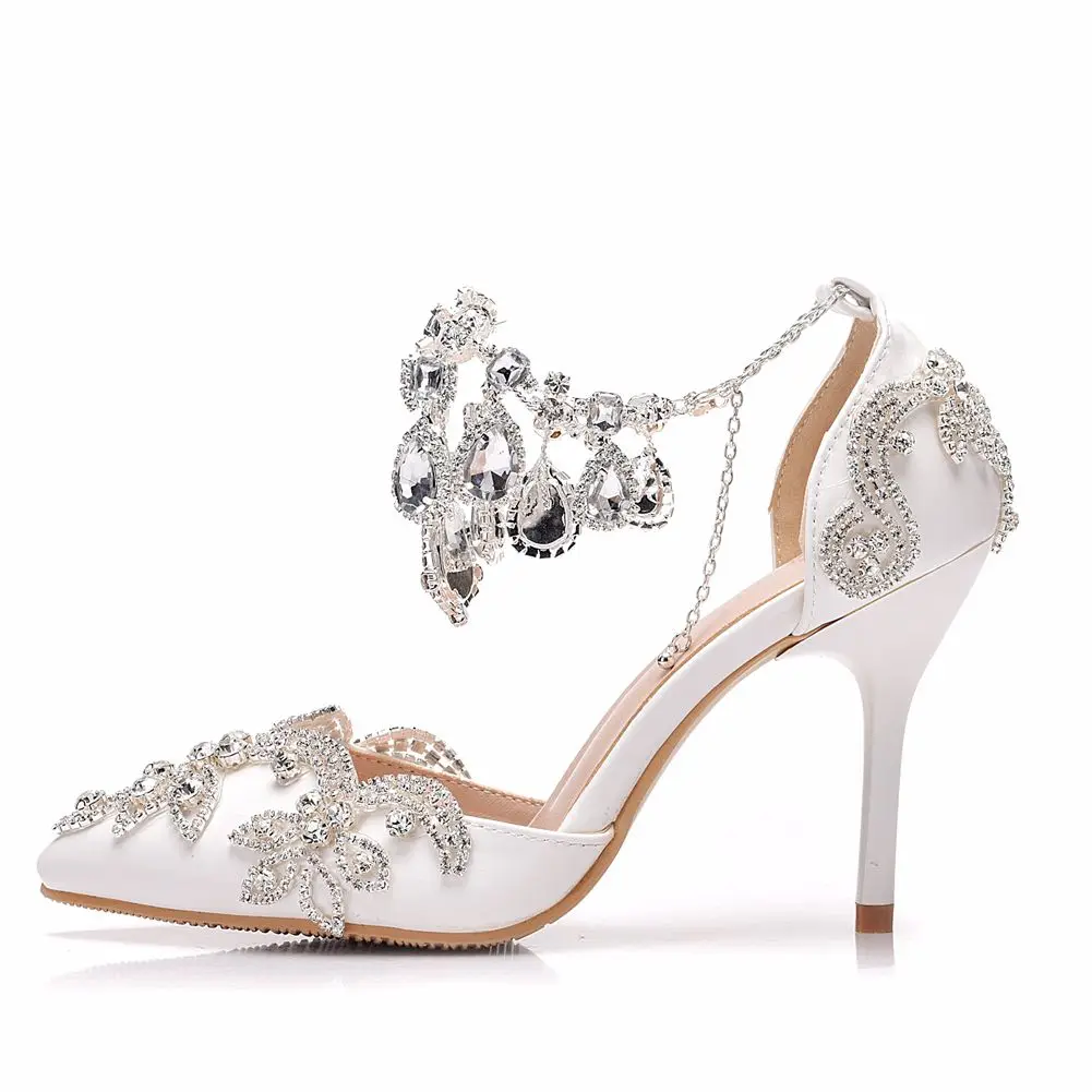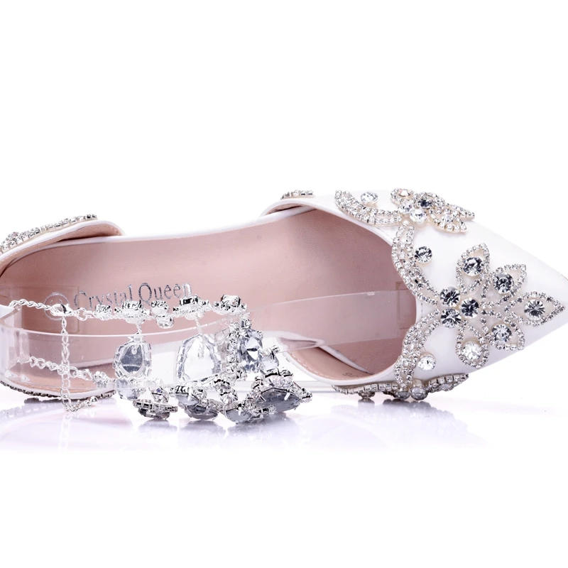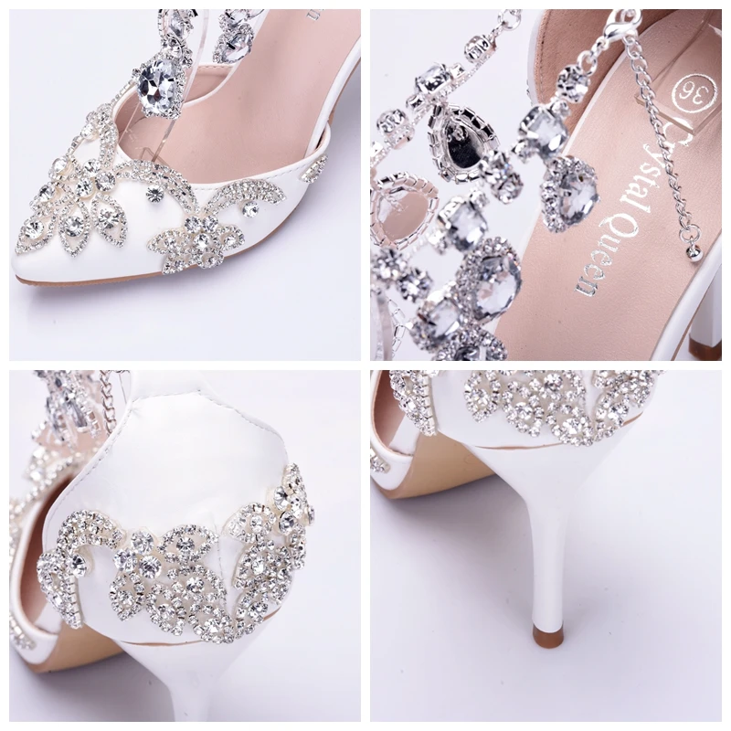 Кристальные королевские сандалии свадебные туфли для невесты на высоком каблуке женские Стразы с острым носком для вечеринки
