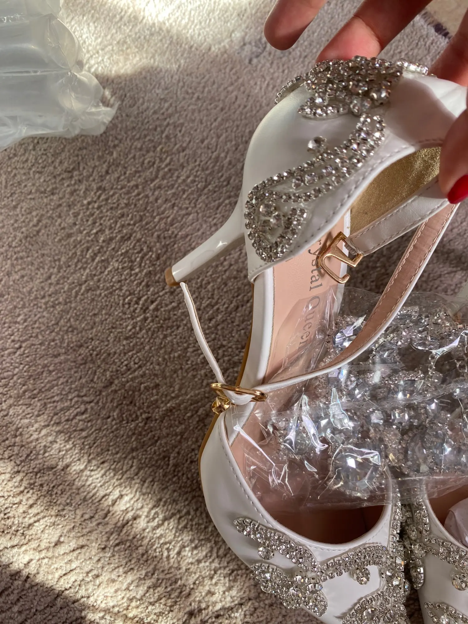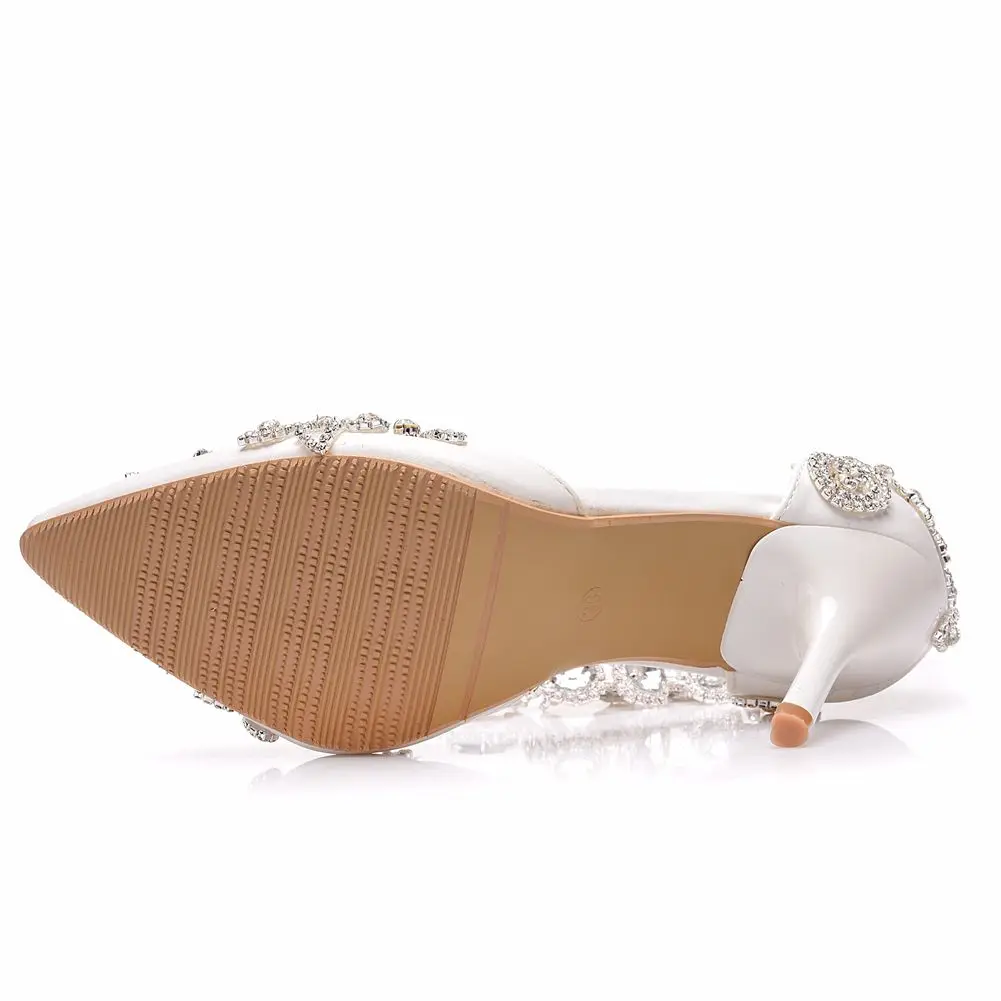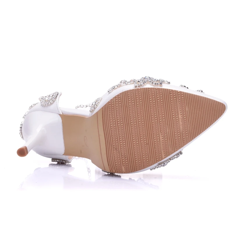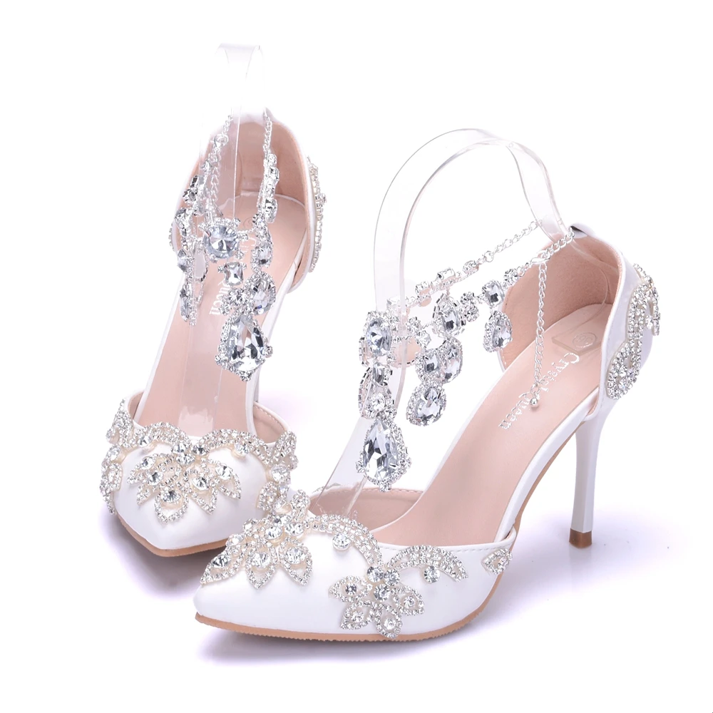 Кристальные королевские сандалии свадебные туфли для невесты на высоком каблуке женские Стразы с острым носком для вечеринки