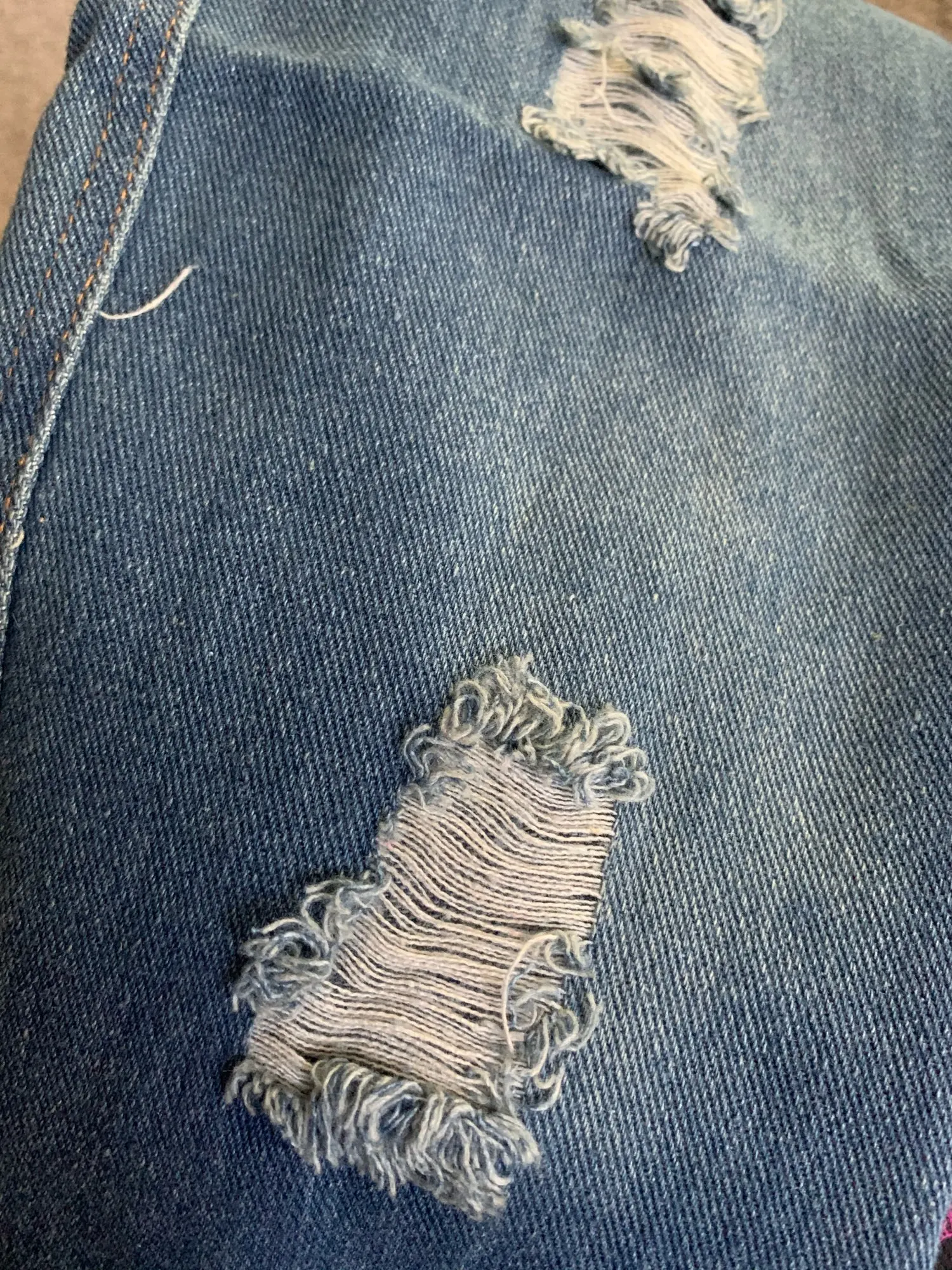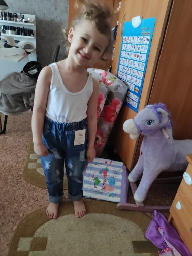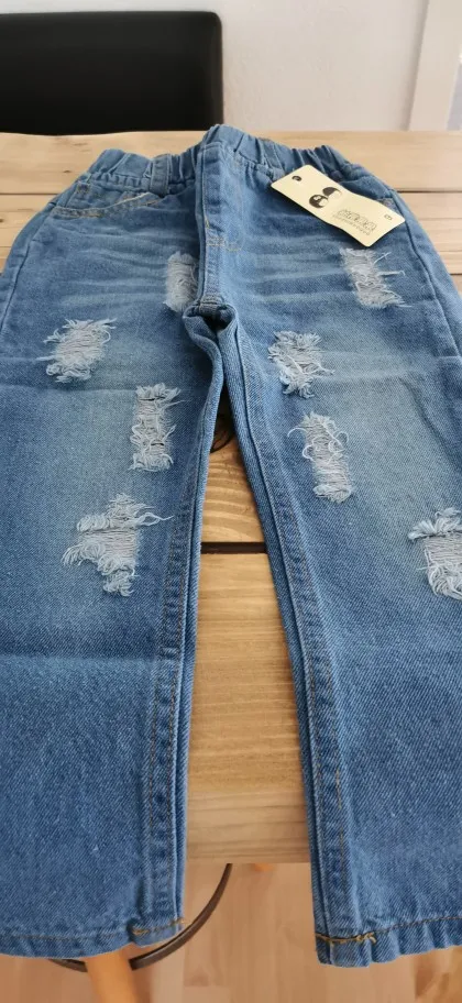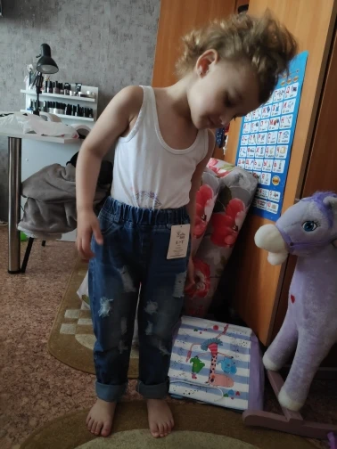 джинсы хорошие. размер 7 как раз на рост 120см, для худенькой девочки. дочь довольна. дырки не большие.