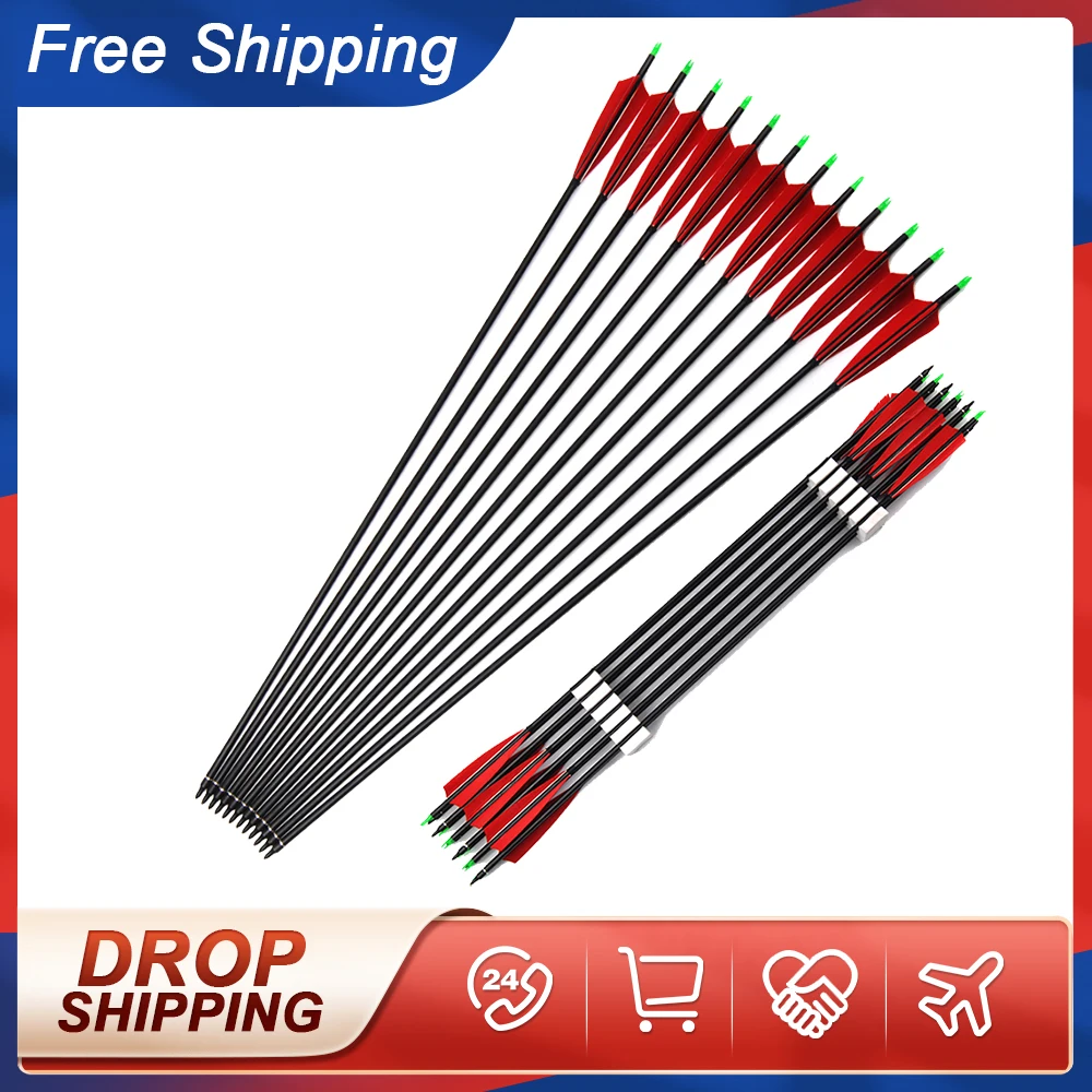 Стрелы из углеродного волокна, 85 см, 500, с красным пером и сменными наконечниками для изогнутого блочного Лука, стрельбы из лука