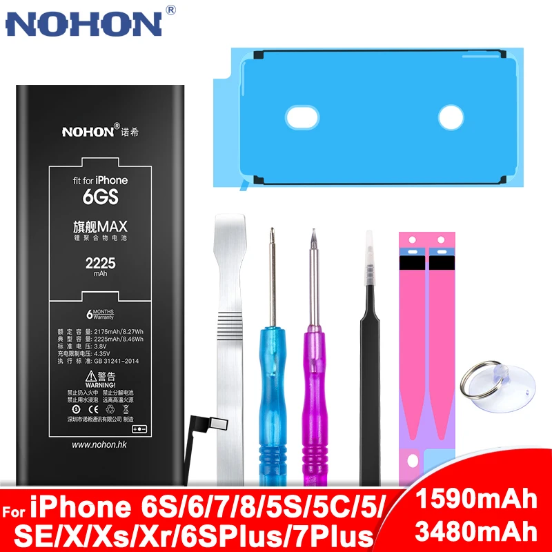 NOHON For iPhone6 iPhone6S iPhone7 iPhone8 iPhone6SPlus iPhoneX iPhoneXR iPhoneXS iPhone5S iPhone5C iPhone5 iPhone4S Battery