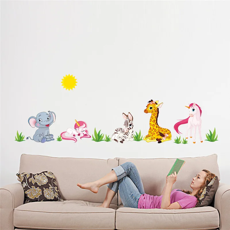 3d эффект окна Единорог настенные Стикеры с лошадью, для детских комнат, Гостиная Спальня Наклейка на стену художественный постер панно диван отделка стен