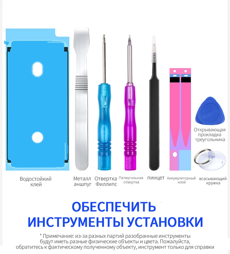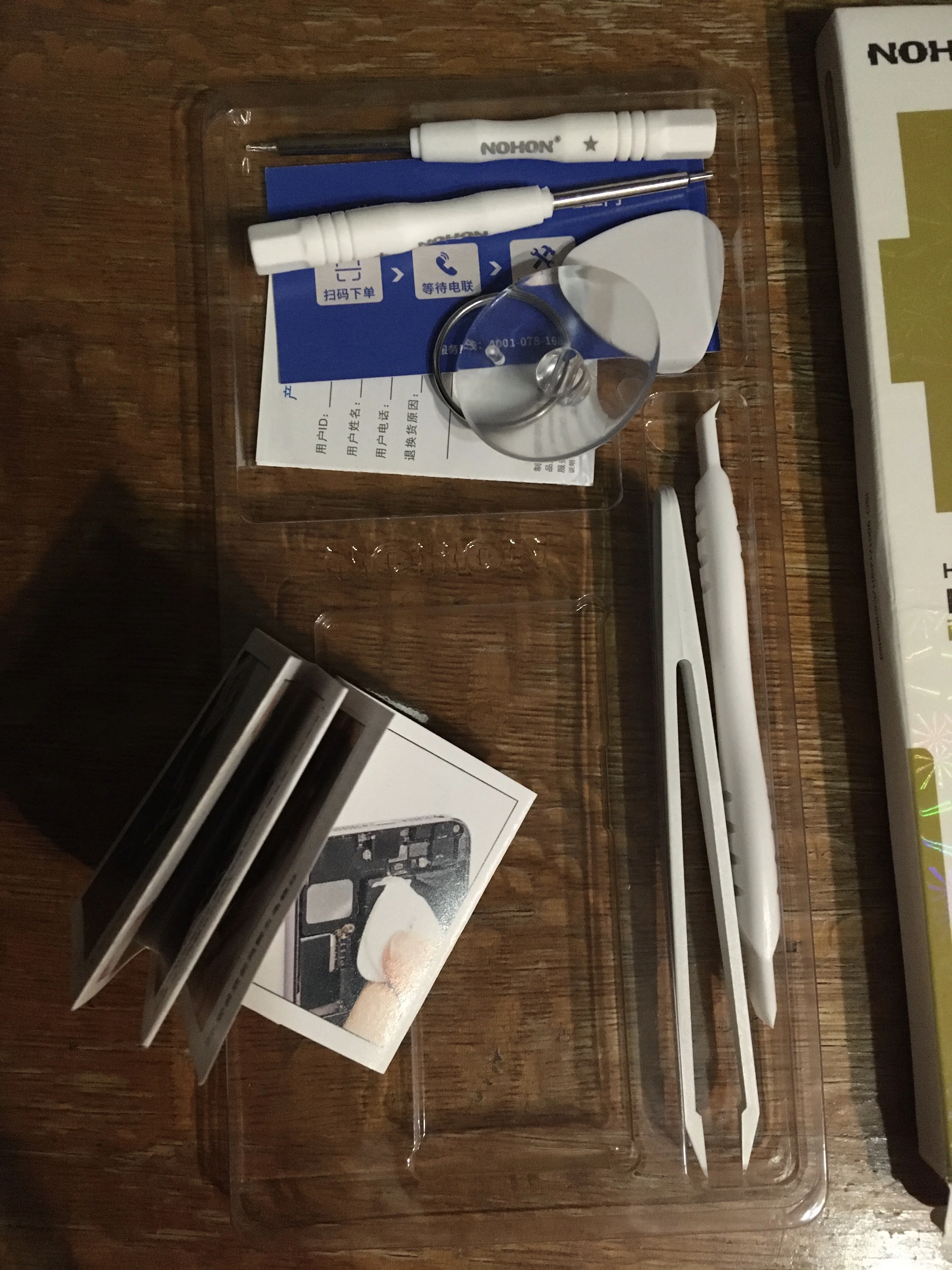 Пришло за 6 дней. Доставка до порога. Упаковка целая. Внутри аккумулятор, двусторонний скотч для крепления аккумулятора и клейкая прокладка для крепления экрана. В комплекте необходимые инструменты: две отвертки, пинцет, лопатка, присоска, медиатор. Все упаковано хорошо и добротно сделано. Спасибо продавцу! Аккумулятор установил. Начальная зарядка составляла 35%. Как будет держать заряд - напишу в дополнительном отзыве.