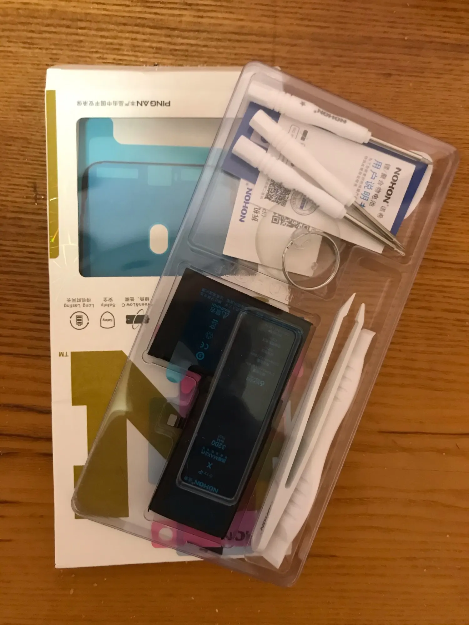 В комплекте идет всё для замены аккумулятора. Упаковка заводская идеальная.внутри инструкция по замене, но лучше глянуть на ютюбе (лишним не будет точно). Поменял за 10 минут сам, не имея совершенно никакого опыта. Заряд батарея держит минимум на 10-20% больше чем обычная. 100% держит просто дольше гораздо.если менять батарею, дак на эту это точно. Денег своих стоит точно, не сомневайтесь. Советую. Экспресс доставка 10 дней в постомат